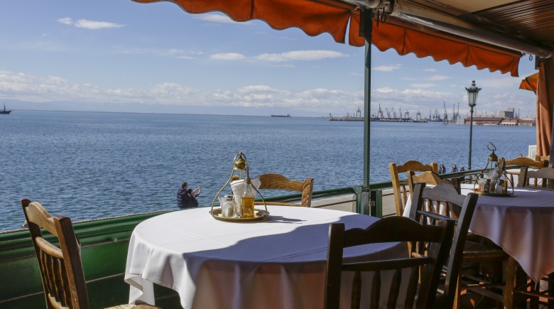 Θάλασσα, ουρανός, παραλία, όμορφη Θεσσαλονίκη στην ταβέρνα της παραλίας!
