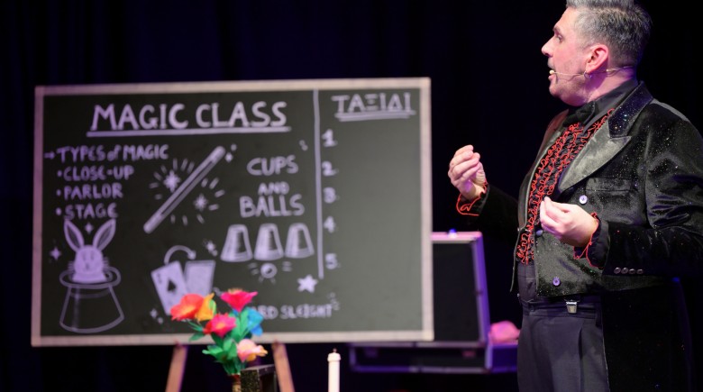 Η σκηνή μοσχοβολά παλιά αίγλη, σαν να ξεπήδησε από εποχές με κλασικές μπουάτ και ψευδαισθήσεις που έκαναν μικρούς και μεγάλους να μένουν με το στόμα ανοιχτό. Κι εκεί, ανάμεσα σε φώτα προβολέων και ρετρό μουσικές, ο Marmelo – ο μοναδικός comedian magician της Ελλάδας – παίρνει τη μεγάλη απόφαση: ανοίγει τη δική του Σχολή Μαγείας!